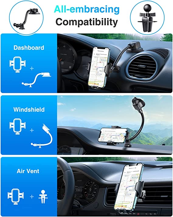 Blast the past. Deeper suction cup base, wider viewing angle; Longer gooseneck arm, closer phone screen; Stronger suction vacuum & stickiness. Make driving safer.