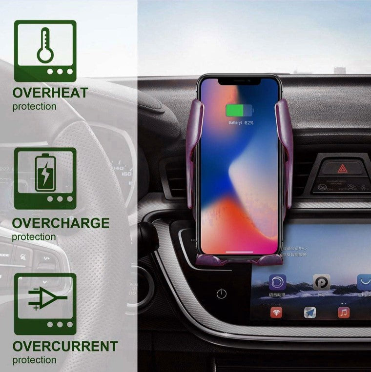 Our Qi car charger has a built-in intelligent chip with multiple protections such as overcharge, overcurrent, short circuit, temperature control, etc
