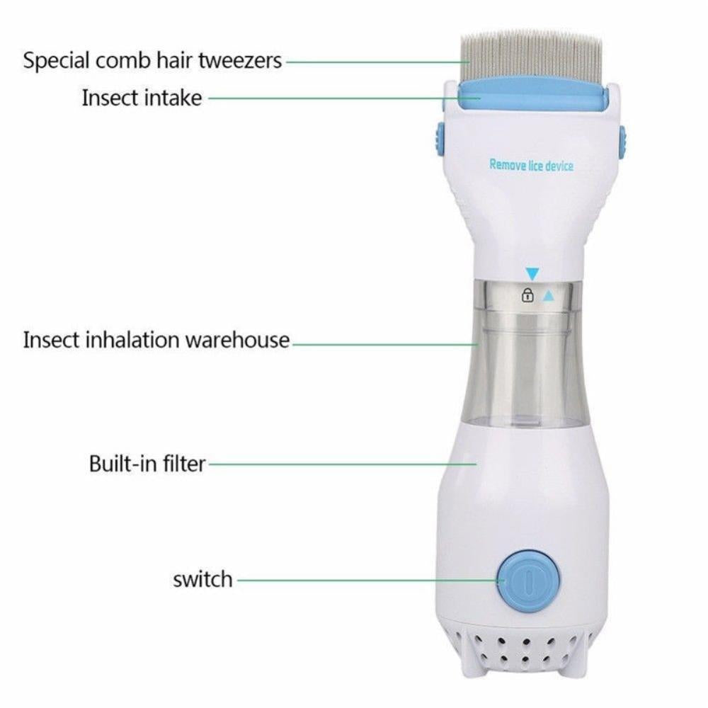 The v-comb is a carefully designed lice comb and FDA-registered device, which instantly vacuums head lice and eggs (nits) including super lice into filters