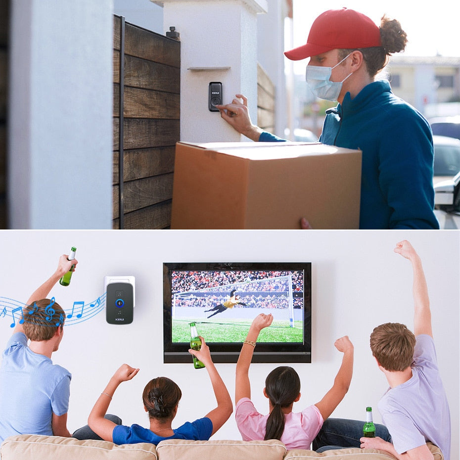 Waterproof outdoor doorbell transmitter operates from -4 to +122°F, withstanding harsh weather conditions. KERUI wireless doorbell has 32 different tones to choose from, 4 adjustable volume levels (25-125dB).