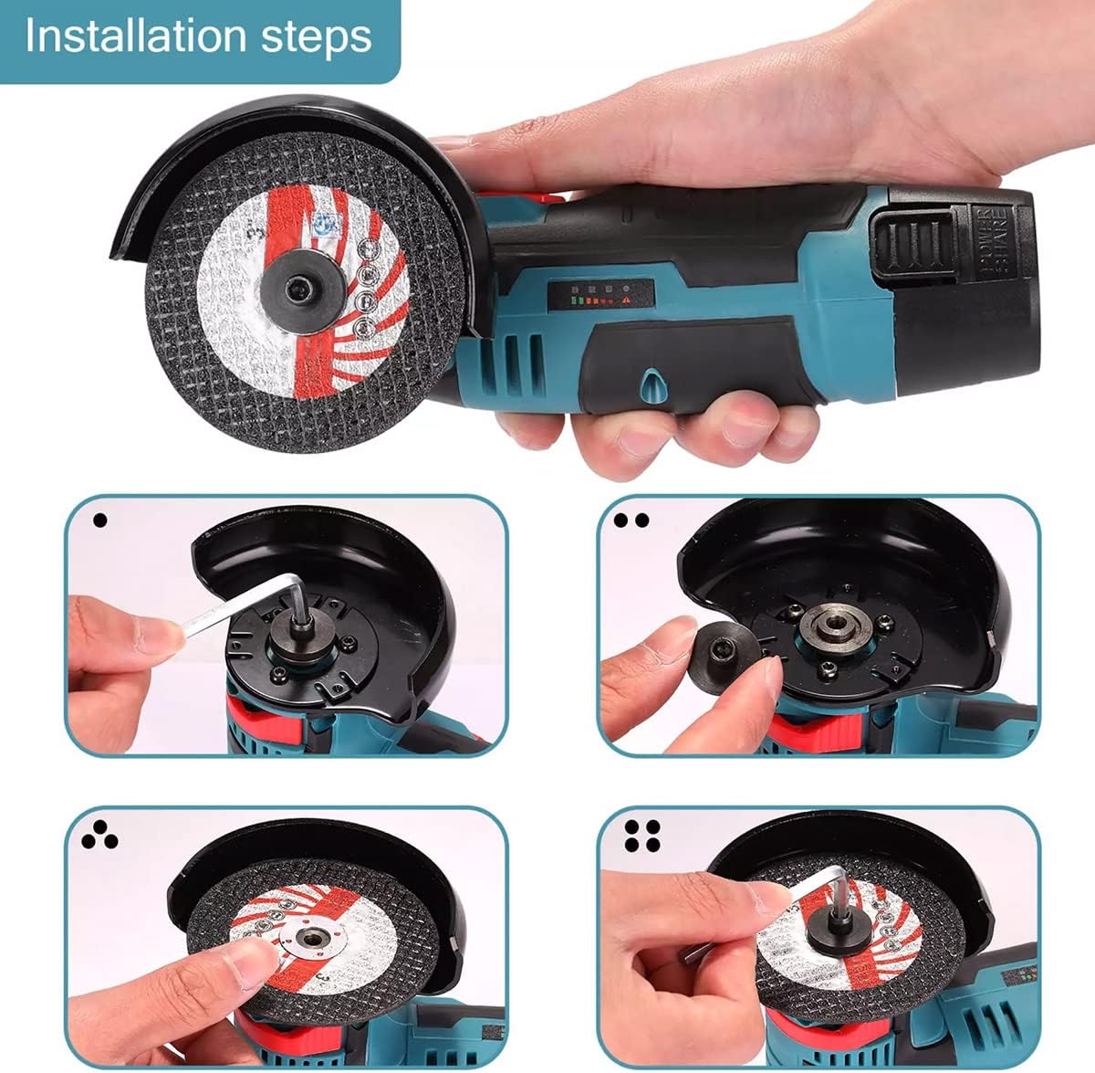 Our 12V grinder is rechargeable and easy to use, metal protection cover can effectively decrease splashes while working