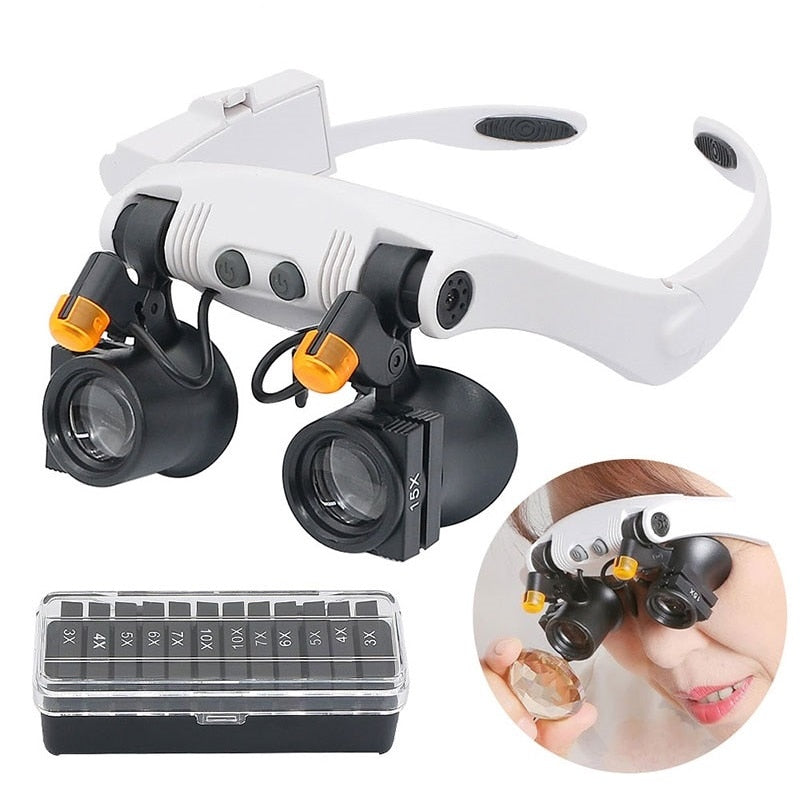 Perfect head-wearing magnifier suitable for close-up work like mechanical processing, electronic repair, jewelry appraisal, timepiece repair, micro-sculpting, etc.