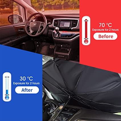 Our umbrella-type windshield sunshade features titanium silver glue coating with composite polyester, which is incredibly significant against the sun's heat! The 10-stable toughened steel rods ensure the superior longevity of the shades!