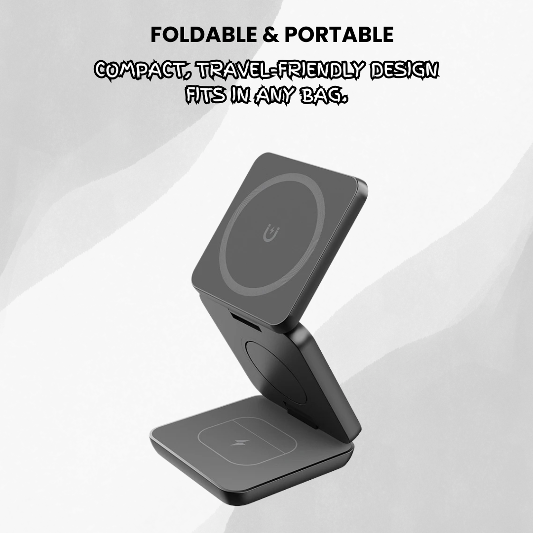 Say goodbye to cluttered cables and slow charging! Get the 3-in-1 Foldable Magnetic Wireless Charger for fast, convenient, and tangle-free charging. Order now and power up effortlessly!