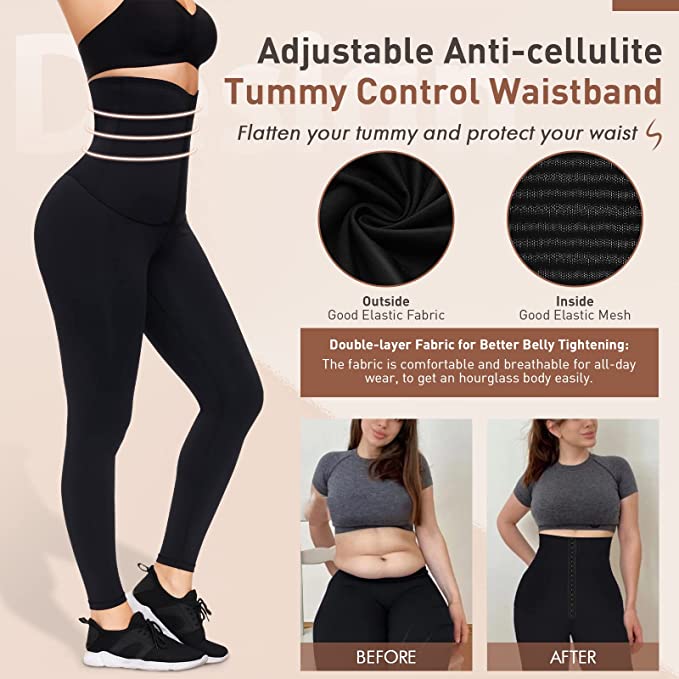 The high-waisted leggings for women are designed with a wide, adjustable 3 rows hook-and-eye closures waistband