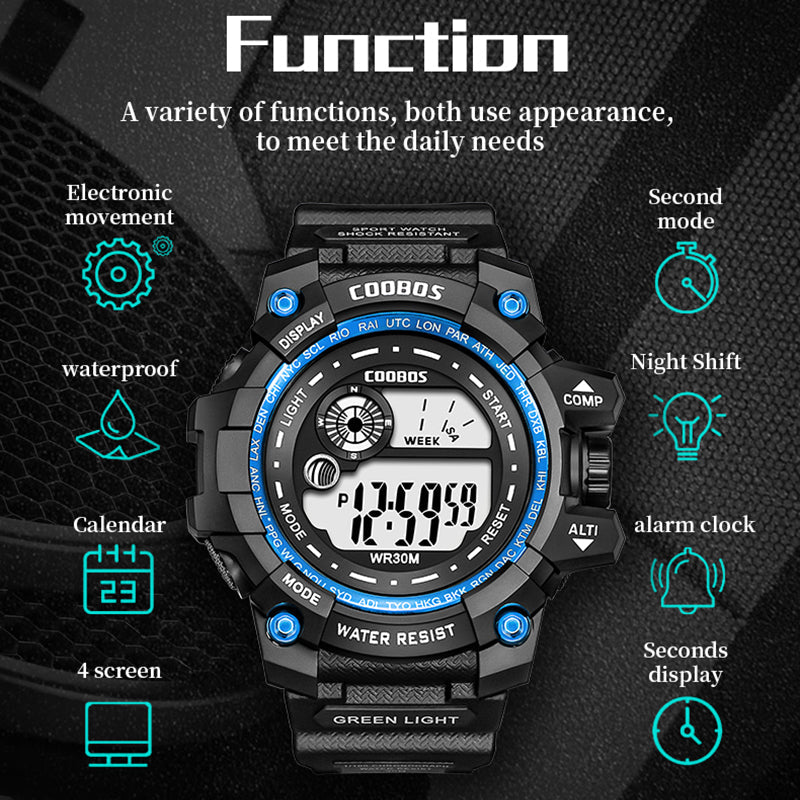 Do you know our LED Digital Military Wristwatch is waterproof, luminous and have many special functions like alarm, chronograph, calendar, 24-hour indication, week display, month display