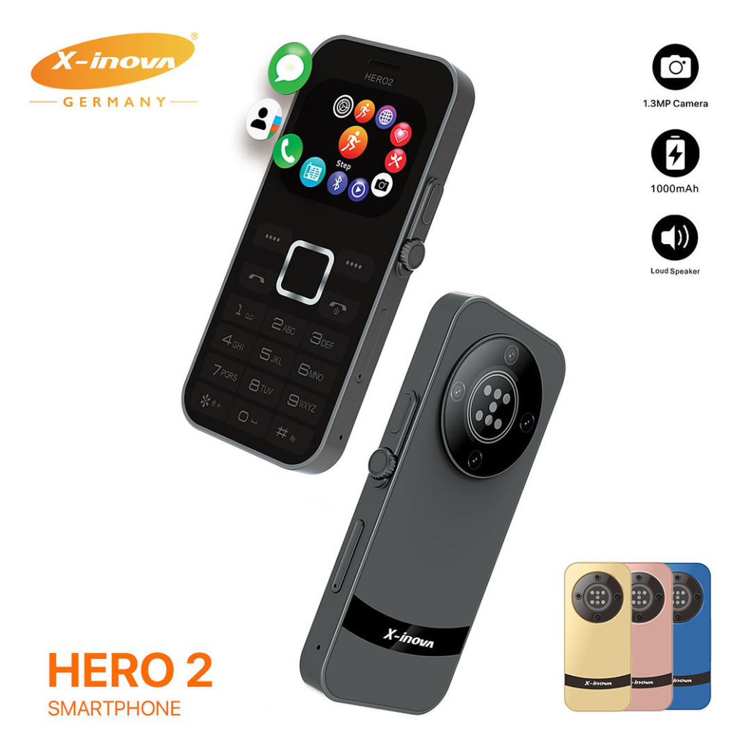 Looking for a compact phone with multifunctional features? The X-inova HERO 2 is the perfect choice! Its unique design and versatile capabilities make it an ideal phone for work, travel, or as a reliable backup device.